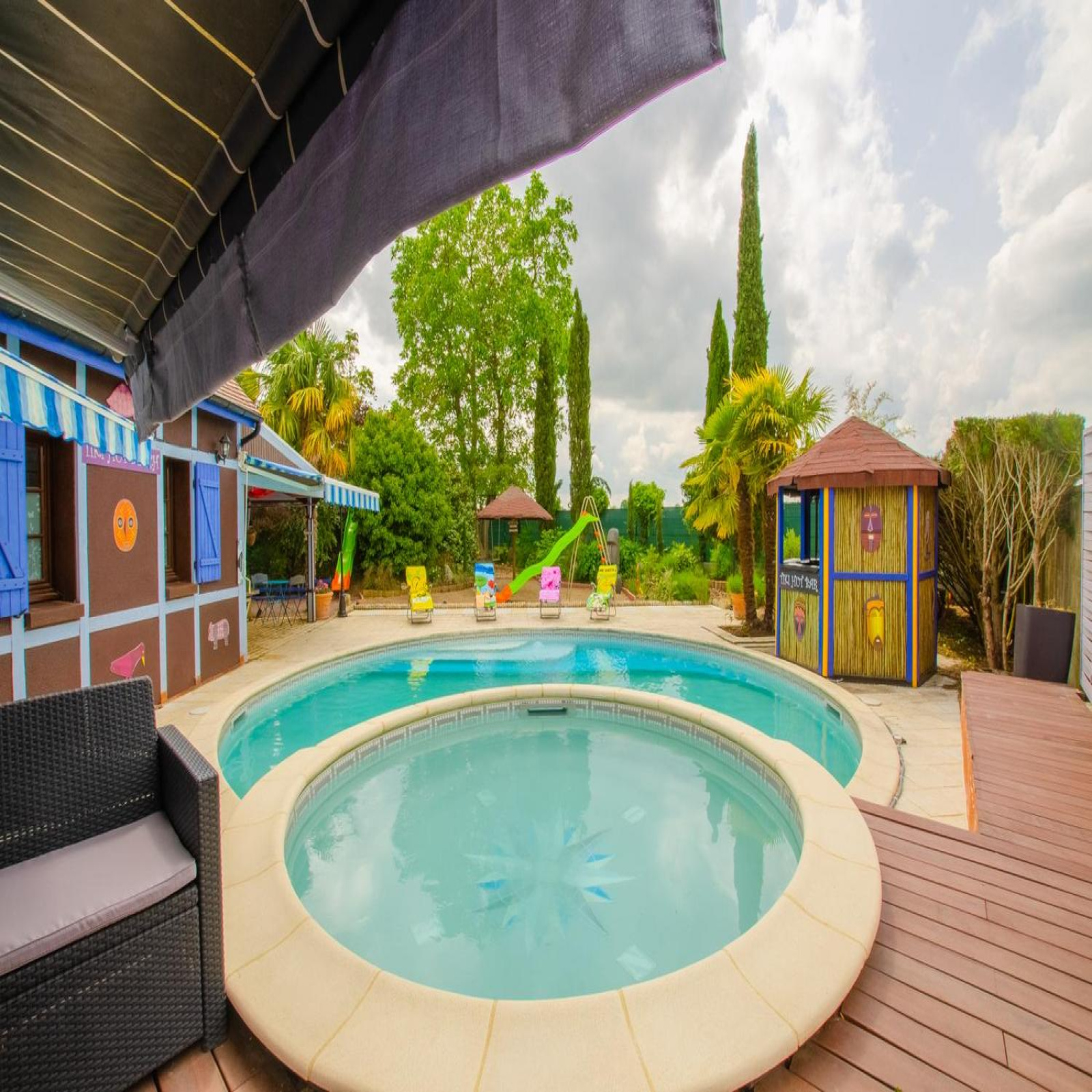 A l'extérieur, dans un cadre intimisme, un beau jardin entièrement clos et arboré. Disposant de plusieurs espaces aménagés: terrasses, plage, zone ombragés et accueillant une piscine "diamant" et un spa.