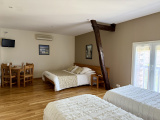 GITES : La deuxième maison d'habitation est actuellement utilisée en chambre d'hôtes, elle peut être utilisée en gîtes ou tout autres projets. Elle est composée d'une grande pièce de restauration avec un espace cuisine, une buanderie et un WC. le rez-de-chaussée accueil une première chambre avec salle d'eau, WC et rangement. A l'étage, un grand pallier dessert une deuxième chambre double (un lit double + un lit simple), une salle d'eau, WC et rangements. Une troisième grande chambre (capacité de deux lits doubles + deux lits simples), une salle de bain, WC et rangements. Une lingerie complète l'étage. Chauffage éléctrique. Aucun travaux à prévoir.